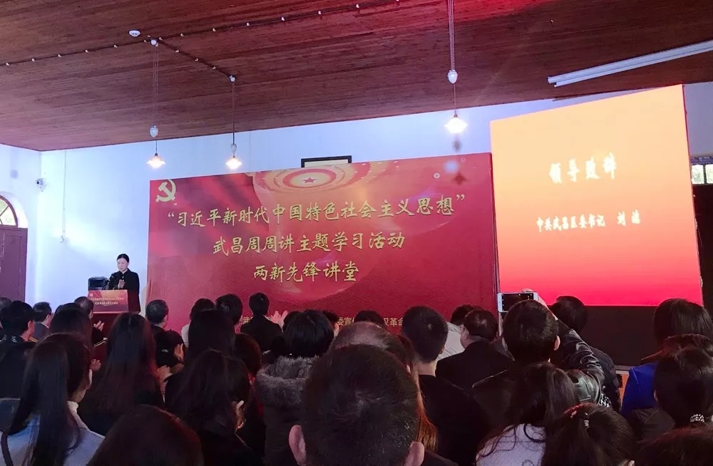 中共武昌区委书记刘洁同志致开场辞。主题学习活动按照武昌周周讲“五个一”环节开展:区委两新工委书记孙娅莉同志带领大家一起重温入党誓词,区委两新办主任杨菁同志诵读党章党规,第七届世界军人运动会形象大使余熙同志开讲微党课--《武汉的国际朋友圈》,2名企业党员代表与大家交流分享了学习心得。活动在全体参会人员齐唱红色歌曲《歌唱祖国》的歌声中结束。