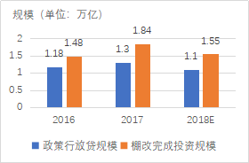 图2::2009-2018棚改计划与实际改造量(单位:万套)