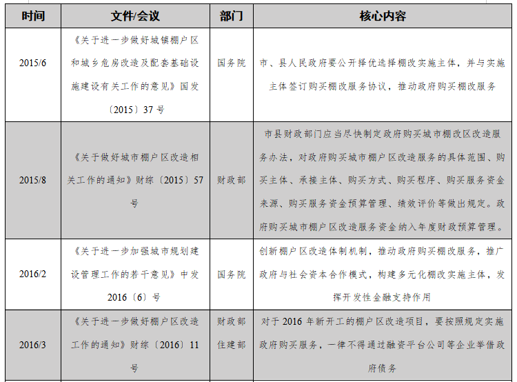 棚户区改造是纳入国家棚户区改造计划,依法实施棚户区征收拆迁、居民补偿安置以及相应的腾空土地开发利用等系统性工程;一直以来,在国发37号文政策庇护下,国家有关部门虽然多次出台政策,严禁违法违规或变相增加地方政府隐性债务,但一直都为棚改留下口子。政府购买棚改服务所发生的超过中期财政规划的项目融资,实质为增加地方政府隐性债务之行为。一方面,财政部87号文“党中央、国务院统一部署的棚户区改造工作中涉及的政府购买服务事项,按照相关规定执行”视为购买棚改服务的护身符;另一方面,财预28号文《试点发行地方政府棚户区改造专项债券管理办法》的下发,意图以显性债务(棚改专项债)取代隐形债务,但棚改专项债能否真正替代原来模式解决棚改资金问题尚待确定,直到作为层级最高的纲领性文件中发27号文出台,政府购买棚改服务形成的债务属于典型的政府隐性债务而受此文管控;且10月28日召开的国常会针对棚改,明确提出“严禁借棚改之名盲目举债和其他违法违规行为”,该会议要求加大棚改专项债发行力度,鼓励棚改专项债这类显性债务融资工具作为棚改主要资金来源,且有针对性地研究新的金融支持政策。这就进一步终止了87号文作为政府购买服务的护身符。