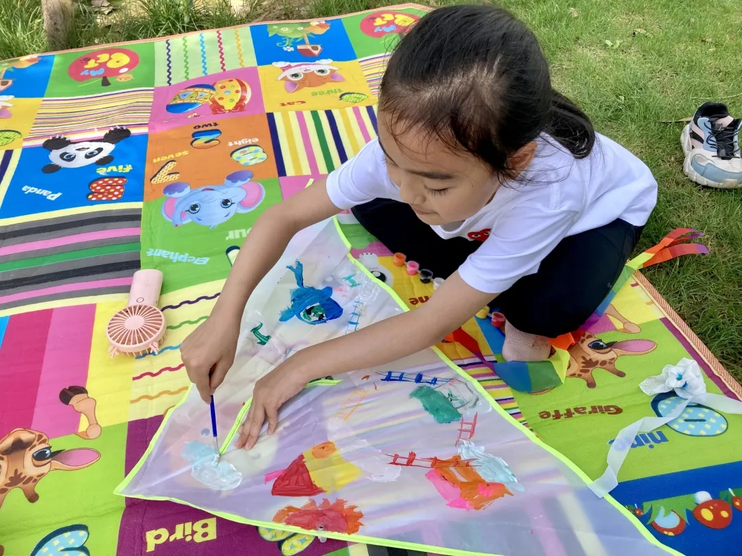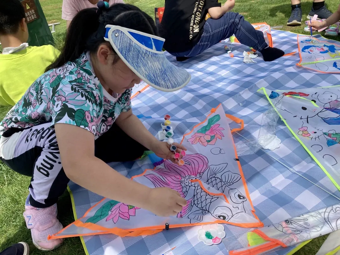 本次活动在亲子风筝DIY中温情启幕。孩子们在与家长的互动中,用五颜六色的画笔认真涂画,让心中的色彩跃然风筝之上,一笔一画勾勒出的是独一无二的风筝,也是初夏里难忘的亲子时光。逐渐升高的气温并没有阻挡孩子们的热情。风筝绘制好后,孩子们迫不及待的拉着家长开始放风筝,奔跑的孩子,欢呼雀跃,可爱至极。家长们也仿佛回到了童年时代,活动中充满了欢声笑语!