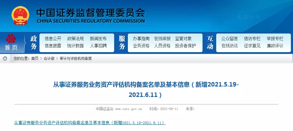 永业行通过证监会从事证券类资产评估业务资质备案