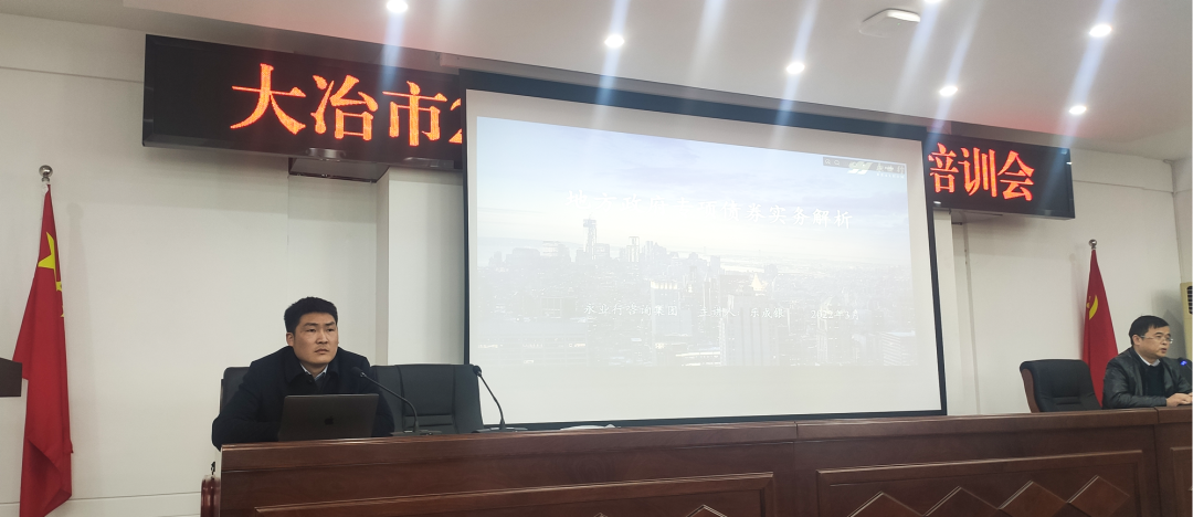 3月24日,受大冶市财政局邀请,永业行投资咨询事业群工程咨询事业部副总经理乐成银在大冶市“2022年全市专项债券业务培训会”上,就专项债基础知识、政策解读及实操案例作专题交流培训。大冶市财政局总经济师李敬主持会议。
