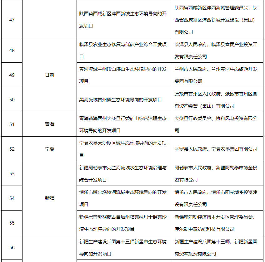 2022年4月28日,生态环境部办公厅、发展改革委办公厅、国家开发银行办公室联合下发了《关于同意开展第二批生态环境导向的开发(EOD)模式试点的通知》(环办科财函〔2022〕172号),同意河北省潮河流域(滦平段)生态治理与乡村振兴产业融合发展项目等58个项目开展第二批生态环境导向的开发(EOD)模式试点工作,期限为2022—2024年。