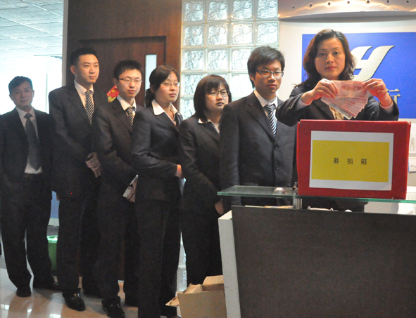 “一方有难,八方支援”。永业行党委成员、全体党员、工会会员率先行动,向玉树灾民捐出一份份热情的援助;各部门员工积极响应捐款倡议,尽一己之力帮助他们度过难关。短短半天时间,就有众多员工争相送来捐款。活动结束后,公司将尽快将捐款送达玉树灾民手中,以帮助他们早日重建家园。截止发稿时,捐款活动还在进行中。